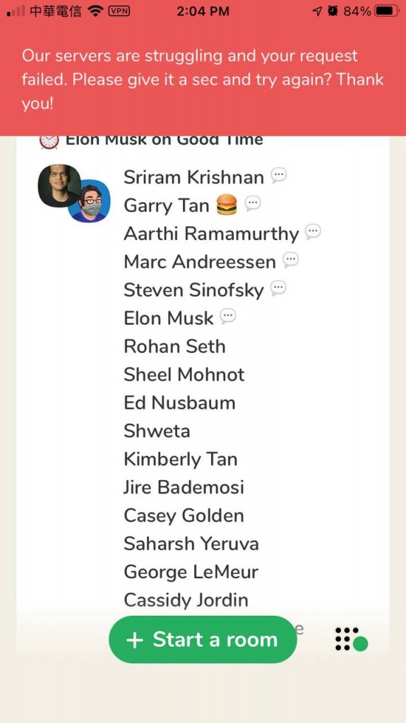 昨天剛加入 Clubhouse,今早 2/1 就看到一堆人在說 Elon Musk 台灣時間 2 PM 要在 Clubhouse 說話,就跟著一窩蜂等著加入,心裡想得是 Clubhouse 有沒有可能同時 live audio streaming 1M 的人。2:04 PM 打開 App 就發現每個房間上限是 5000 lol