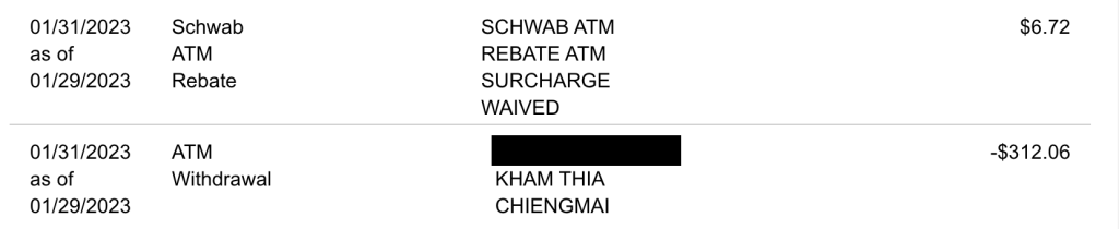 - 清邁提款機都要額外收 $220 THB 手續費,嘉信很佛心筆筆補貼回來。
